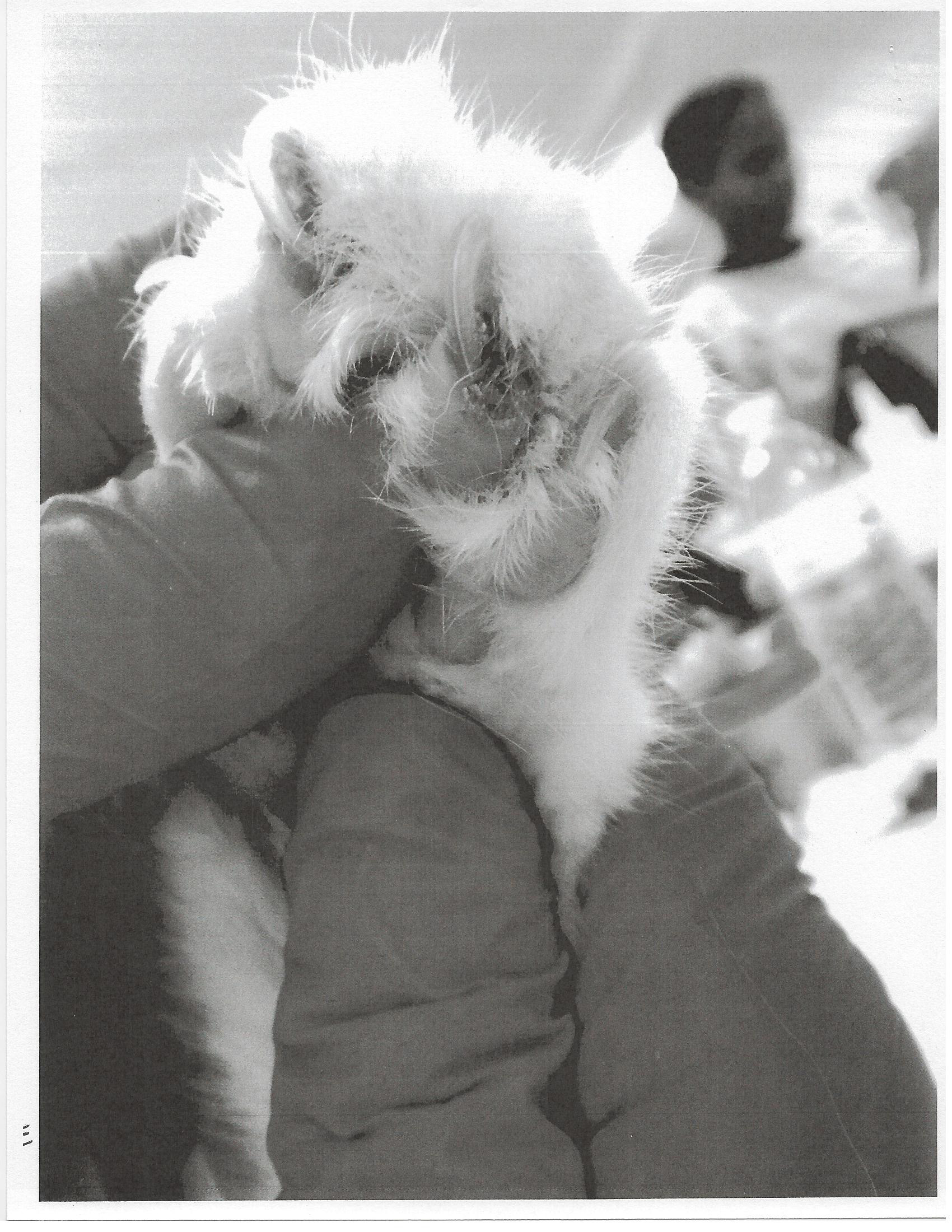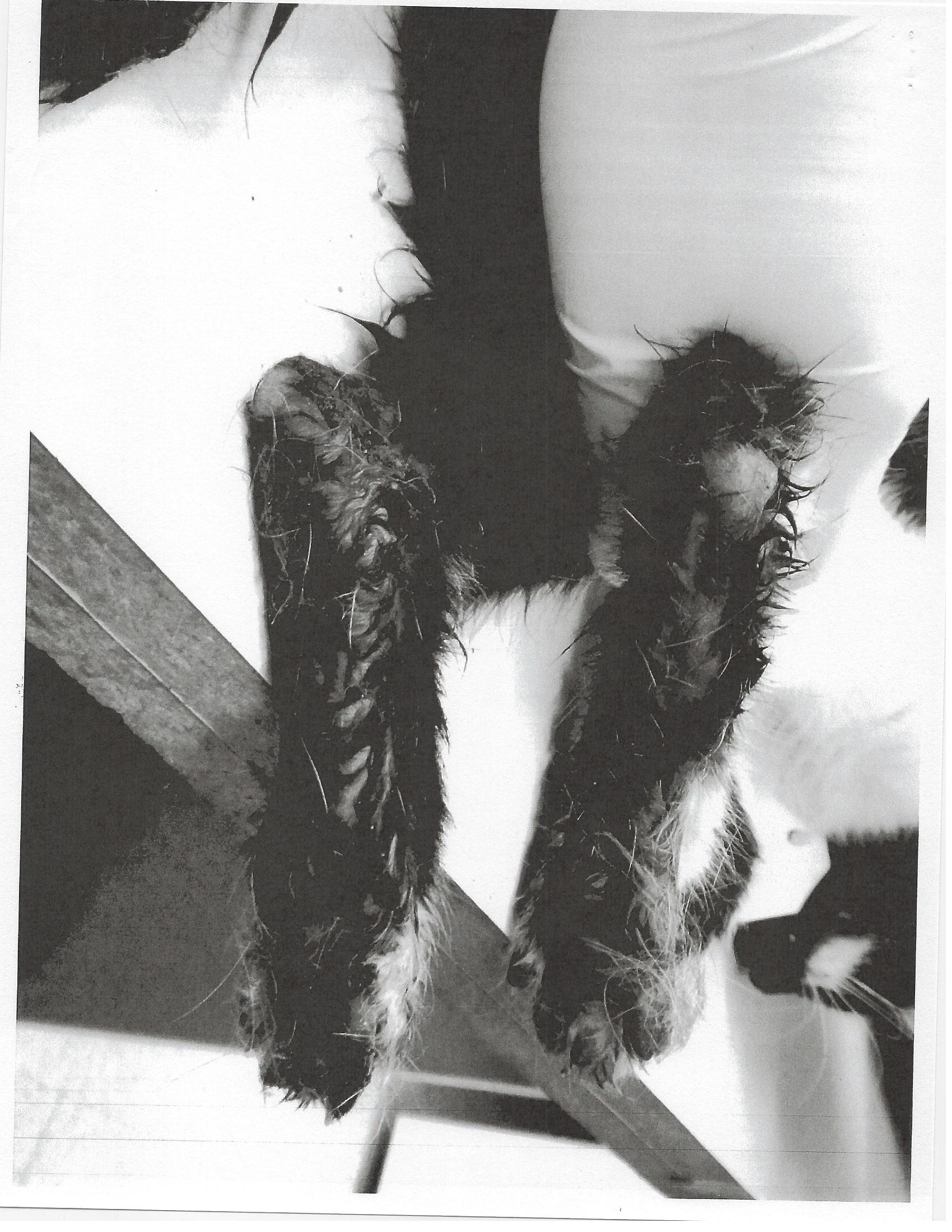 Cat #039 had lain in his own waste for so long, he suffered chemical burns from it.