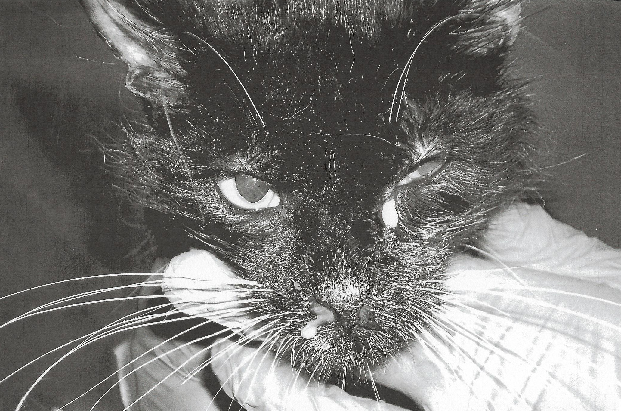 Exhibit 16 chronicles the treatment of Cat #069, a cat with an upper respiratory infection that led to neurological damage. Cat #069's story has a happy outcome, and a bright future.Cat #069 suffered from a severe upper respiratory infection and a painfully ruptured eardrum.