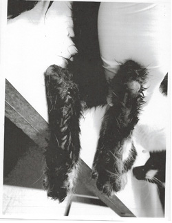 Cat #029's toenails were painfully ingrown and had pierced the pads of the feet. His paws were swollen and leaking pus.